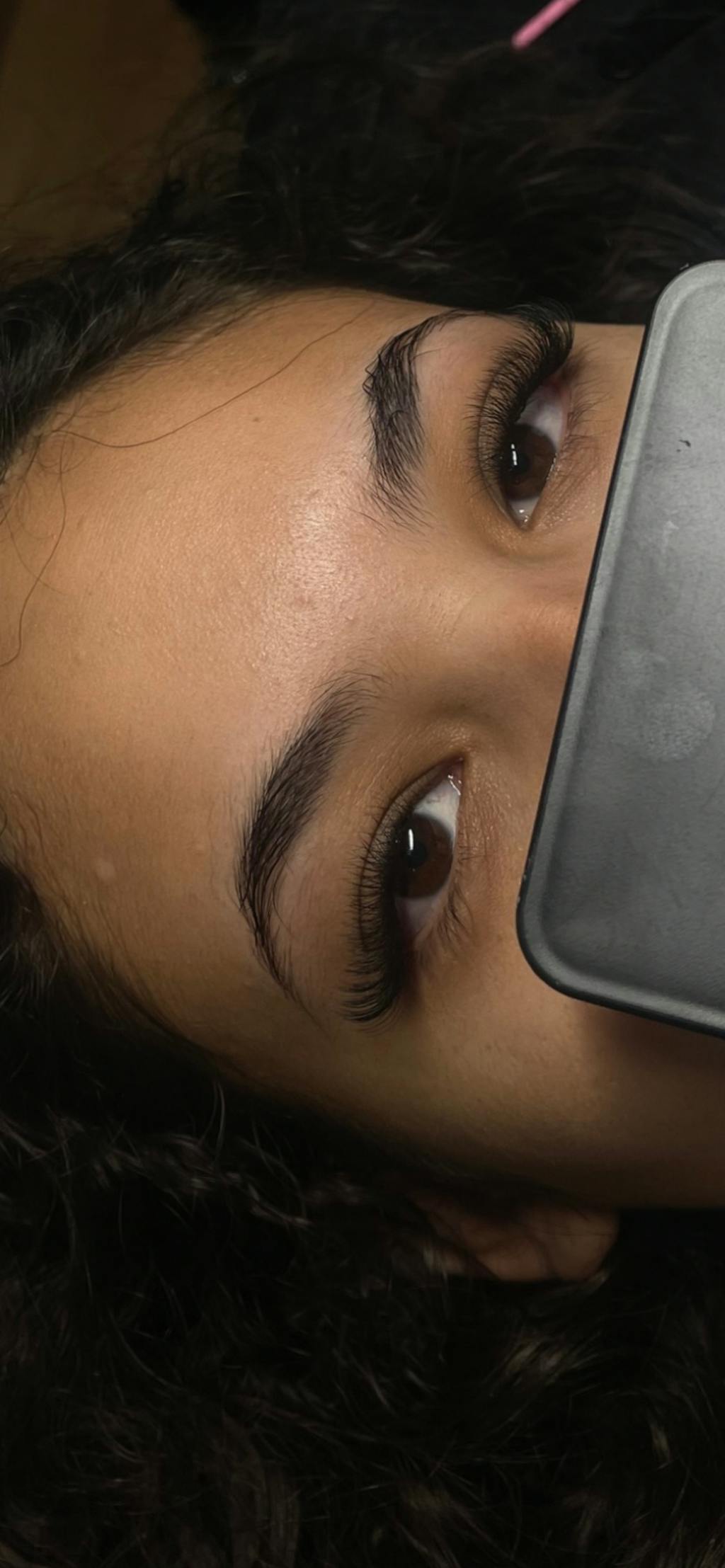 Résultat d'une pose d'extension de cils réalisé par une technicienne de cils fourni volume bonne tenue, marque professionnelle Maison Moon
